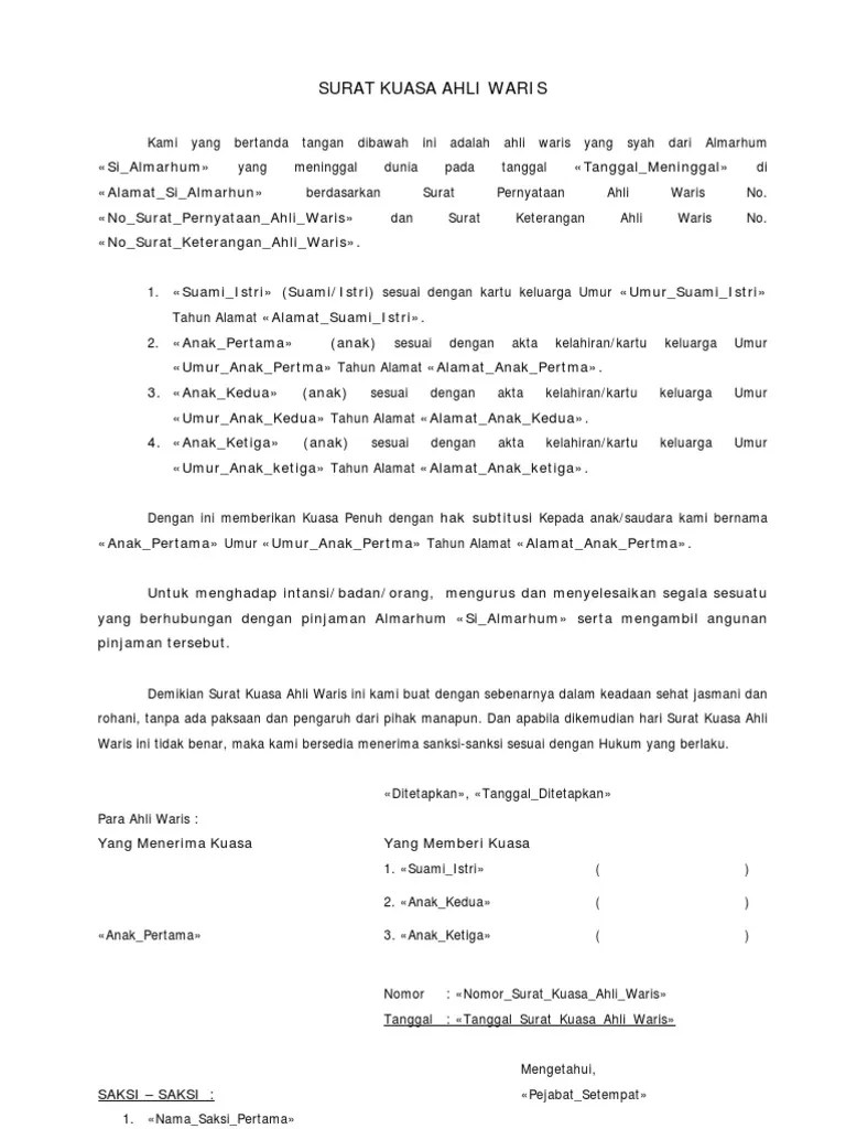 Surat kuasa ahli waris dari desa. Kami yang bertanda tangan di bawah ini adalah ahli waris dari almarhum : Lurah/kepala desa dan dikuatkan oleh camat bagi golongan wni bumiputera.1. Surat pernyataan pengakuan telah menghibahkan tanah. Surat keterangan waris cucu untuk pembuatan akta tanah by. Doc surat keterangan ahli waris siswoyo raharjo academia edu. Penduduk asli, yang dibuat oleh ahli waris, disaksikan oleh 2 (dua) orang saksi dengan dikuatkan oleh lurah/ kepala desa dan camat tempat tinggal pewaris. Yang bertanda tangan di bawah ini . Menerangkan dengan sebenarnya dan sanggup . Kami yang bertanda tangan di bawah ini, para ahli waris dari almarhum/ almarhumah … Surat keterangan ahli waris yang dikeluarkan oleh kepala desa sebagai alas hak. Ahli waris 2021 surat keterangan ahli waris dari kepala desa doc contoh surat ahli waris sebidang tanah biaya pembuatan surat ahli waris . Contoh surat keterangan ahli waris doc blanko ahli waris doc doc surat keterangan ahli waris lensa computer academia edu cara buat dan .